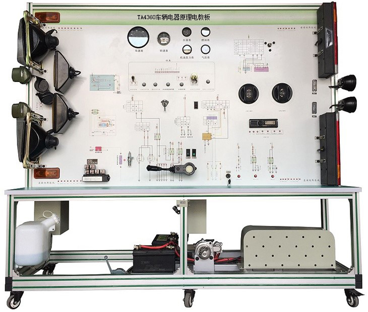 該設(shè)備采用泰安TA4360柴油機(jī)整車(chē)電器實(shí)物為基礎(chǔ),充分展示汽車(chē)儀表系統(tǒng)、燈光系統(tǒng)、雨刮系統(tǒng)、喇叭系統(tǒng)、發(fā)動(dòng)機(jī)電器系統(tǒng)、起動(dòng)系統(tǒng)和充電系統(tǒng)等汽車(chē)電器各系統(tǒng)的組成結(jié)構(gòu)和工作過(guò)程。