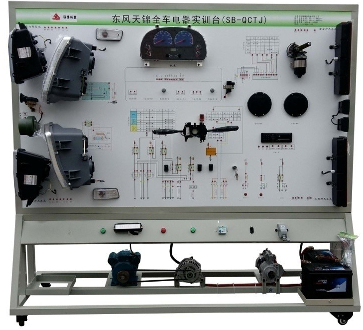電器電路實訓(xùn)臺(東風(fēng)天錦運(yùn)輸車電器電路實驗臺)該設(shè)備采用全新 東風(fēng)天錦 柴油機(jī)整車電器實物為基礎(chǔ),充分展示汽車儀表系統(tǒng)、燈光系統(tǒng)、雨刮系統(tǒng)、喇叭系統(tǒng)、發(fā)動機(jī)電器系統(tǒng)、起動系統(tǒng)和充電系統(tǒng)等汽車電器各系統(tǒng)的組成結(jié)構(gòu)和工作過程。