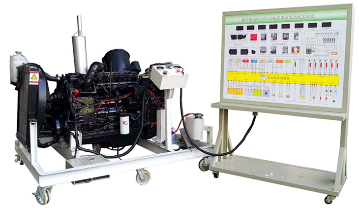 柴油發(fā)動(dòng)機(jī)總成、組合儀表、發(fā)動(dòng)機(jī)控制單元、散熱系統(tǒng)(水箱、風(fēng)扇、上下水管)、排氣系統(tǒng)、進(jìn)氣系統(tǒng)(進(jìn)氣軟管、空氣濾清器總成)、原車(chē)電路原理圖板及檢測(cè)端子面板、蓄電池、電源總開(kāi)關(guān)、燃油箱、油水分離器、油門(mén)踏板裝置、可移動(dòng)機(jī)臺(tái)架、臺(tái)架高溫及轉(zhuǎn)動(dòng)等部位加裝防護(hù)裝置等。