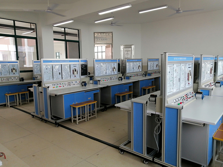 電工電子電拖PLC綜合實訓(xùn)考核裝置"教學(xué)做"電工一體化教室以電氣運行與控制專業(yè)必備的電氣設(shè)備安裝、操作、維護(hù)與應(yīng)用崗位能力為重點,以照明線路、電動機(jī)繼電控制線路和常用機(jī)床電氣控制技能為目標(biāo),成為集教學(xué)、培訓(xùn)、服務(wù)和學(xué)生創(chuàng)新活動于一體的高水平綜合性實踐教學(xué)基地。