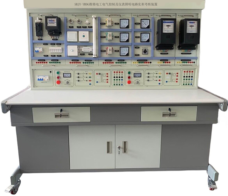 電氣教學(xué)實(shí)訓(xùn)實(shí)驗(yàn)臺(tái)、《電氣工程實(shí)驗(yàn)實(shí)訓(xùn)臺(tái)》是電氣工程及其自動(dòng)化專(zhuān)業(yè)學(xué)生的一門(mén)核心專(zhuān)業(yè)實(shí)踐課程。通過(guò)實(shí)訓(xùn),使學(xué)生系統(tǒng)掌握常用電工工具、電工儀器儀表的使用,初步具備常用高低壓電器的安裝與維修、基本電氣控制電路的設(shè)計(jì)、安裝、調(diào)試和排除故障能力,獲得PLC控制方面的基本訓(xùn)練,培養(yǎng)學(xué)生動(dòng)手能力、獨(dú)立分析和解決一般技術(shù)問(wèn)題的能力、團(tuán)隊(duì)協(xié)作的意識(shí)和實(shí)事求是的工作態(tài)度,為以后從事本專(zhuān)業(yè)的工作打下基礎(chǔ)。